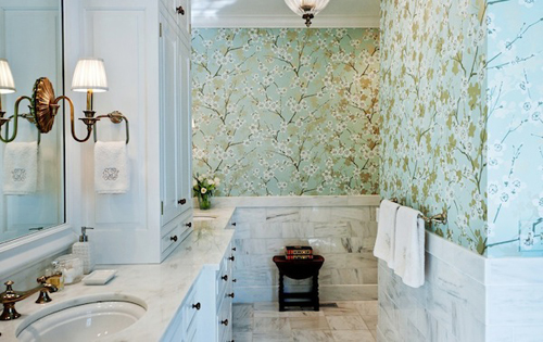 Giấy dán tường phòng tắm vừa chống nước mà vẫn mang lại nét thẩm mỹ cao.